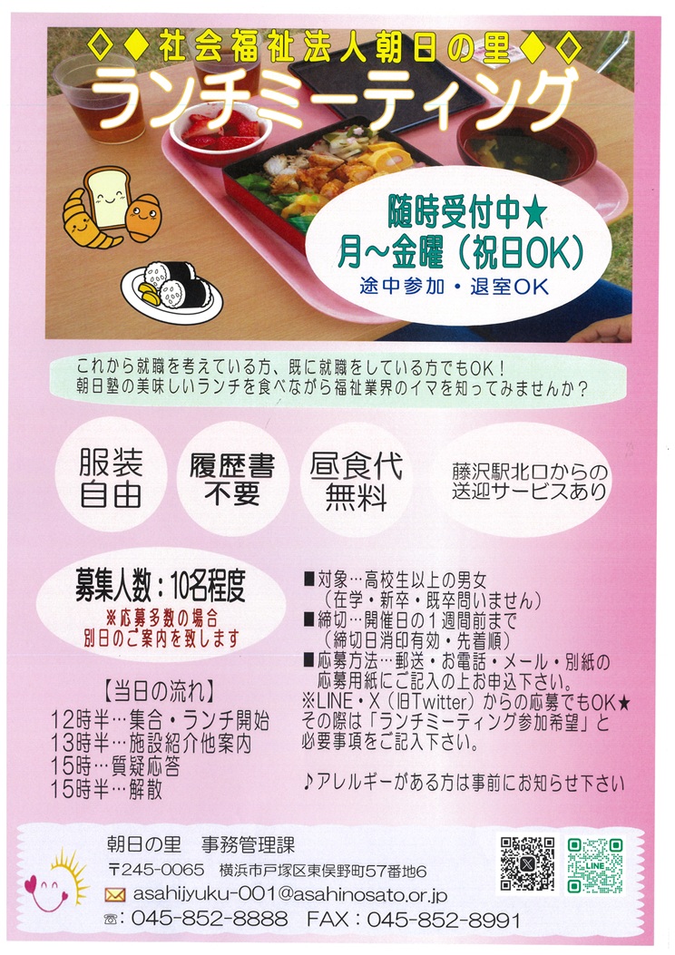 場 所 | 社会福祉法人朝日の里 法人本部 〒245-0065 横浜市戸塚区東俣野町57番地6 |